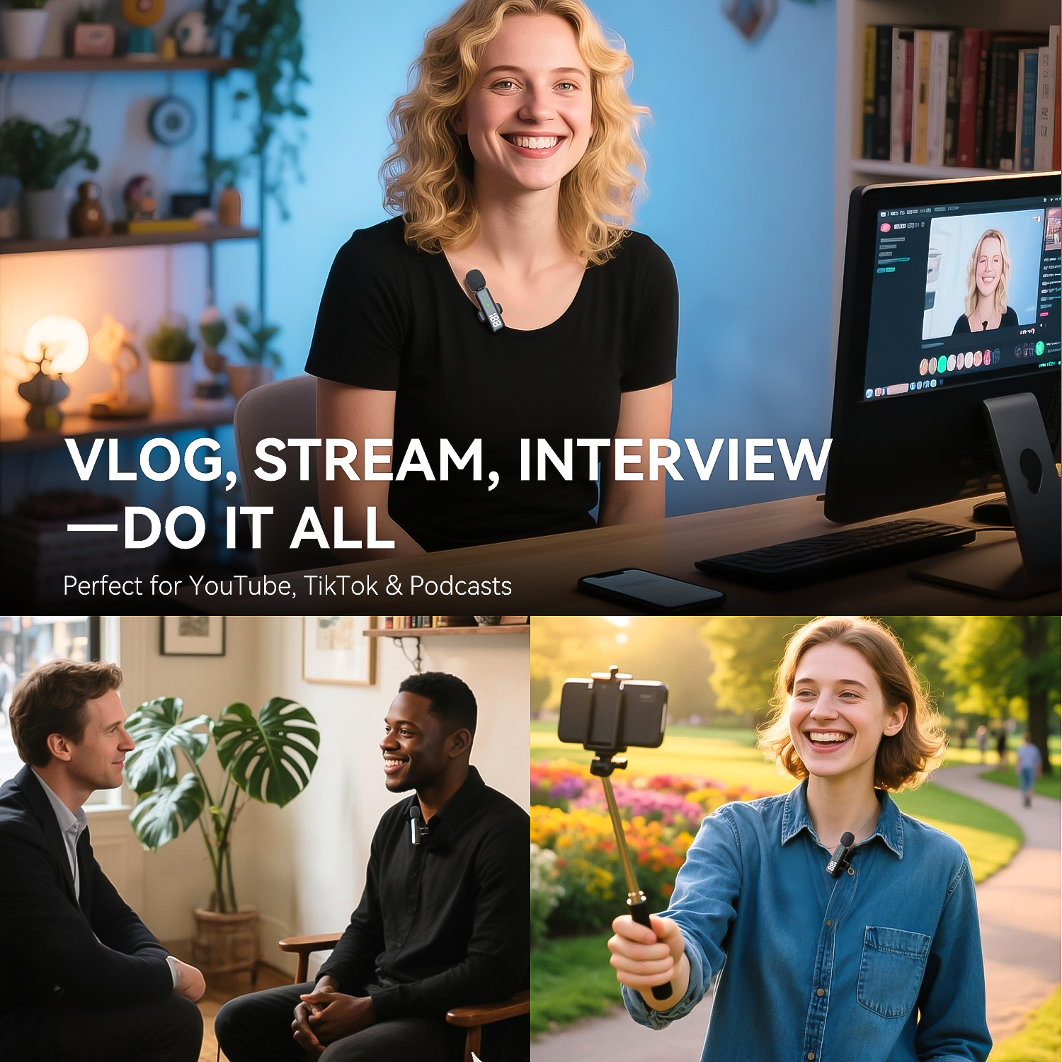 - Long Battery Life:The microphone wireless offers impressive battery life, with up to 7 hours of continuous use per microphone, This long battery life makes it ideal for extended recording sessions, interviews, podcasts, or live streaming without worrying about battery drains. Additionally, iphone microphone included USB-C charging cable allows you to recharge your microphone easily for future use.