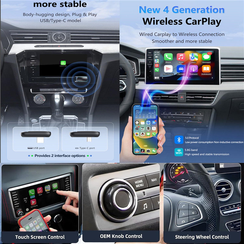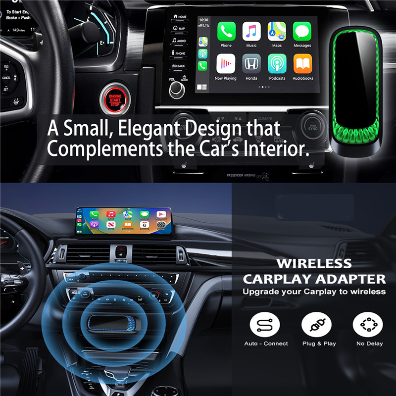 [CarPlay Wireless Adapter] Easy to convert your wired Carplay to wireless with Wireless CarPlay Dongle Your original car stereo will quickly get the APP on your phone supported by the current system, such as message, music, map, and realize the voice command like Siri, realize to operate Apps or control the car stereo.such as navigation, music playback, calls, etc.The small size of the wireless carplay adapter ensures it will not interfere with